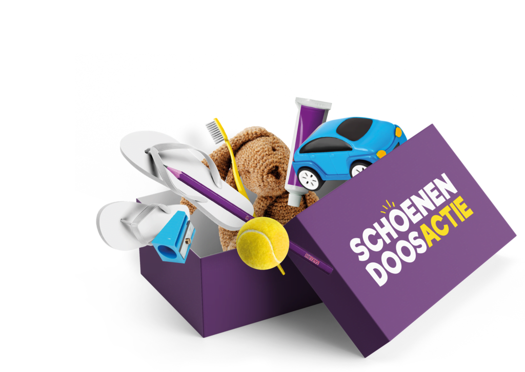 De Schoenendoosactie, voorheen Actie4Kids, deelt al 26 jaar mooi versierde en gevulde schoenendozen uit aan kinderen in nood. Jaarlijks worden ruim 45.000 schoenendozen opgehaald in Nederland en België en uitgedeeld in de landen Malawi, Togo, Sierra Leone, Roemenië en Moldavië, en op Lesbos in vluchtelingenkamp Moria.